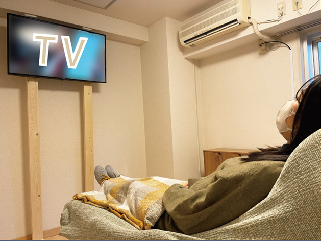 少しでもリラックスしてお過ごしいただけるよう、TVをご覧いただけるほか、身体をゆっくり休められる環境づくりを心がけています。
