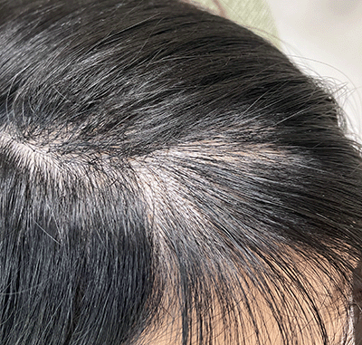 前髪に増毛エクステを結び、透け感を自然にカバーしボリュームアップをさせていただきました。
