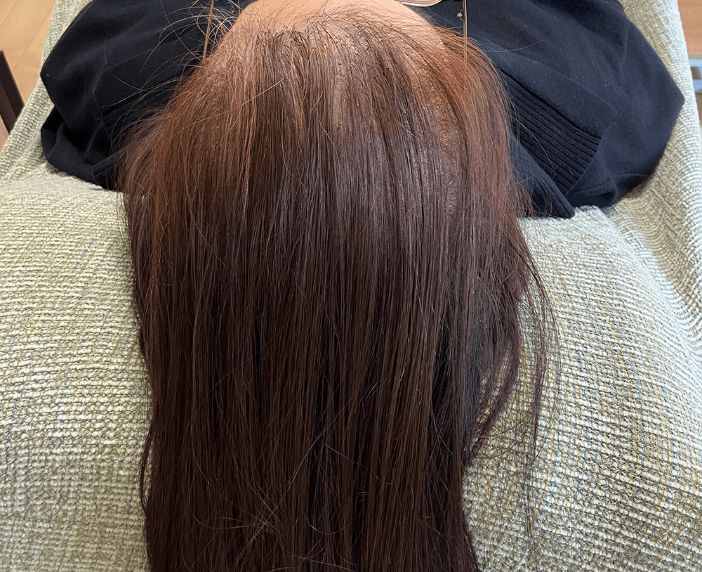 前髪からの全体の透け感にお悩みでしたので、増毛エクステ1000本で透け感を自然にカバーしボリュームアップさせて頂きました。