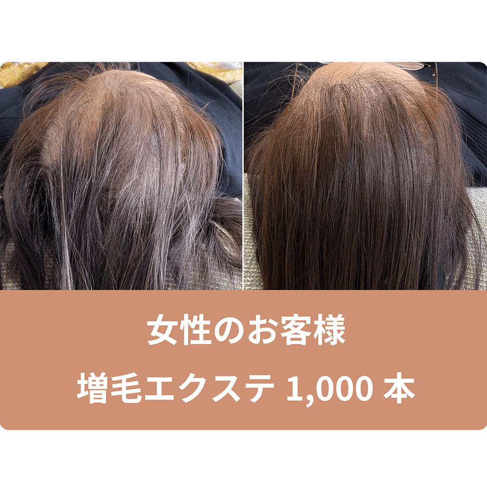 前髪からの全体の透け感にお悩みでしたので、増毛エクステ1000本で透け感を自然にカバーしボリュームアップさせて頂きました。