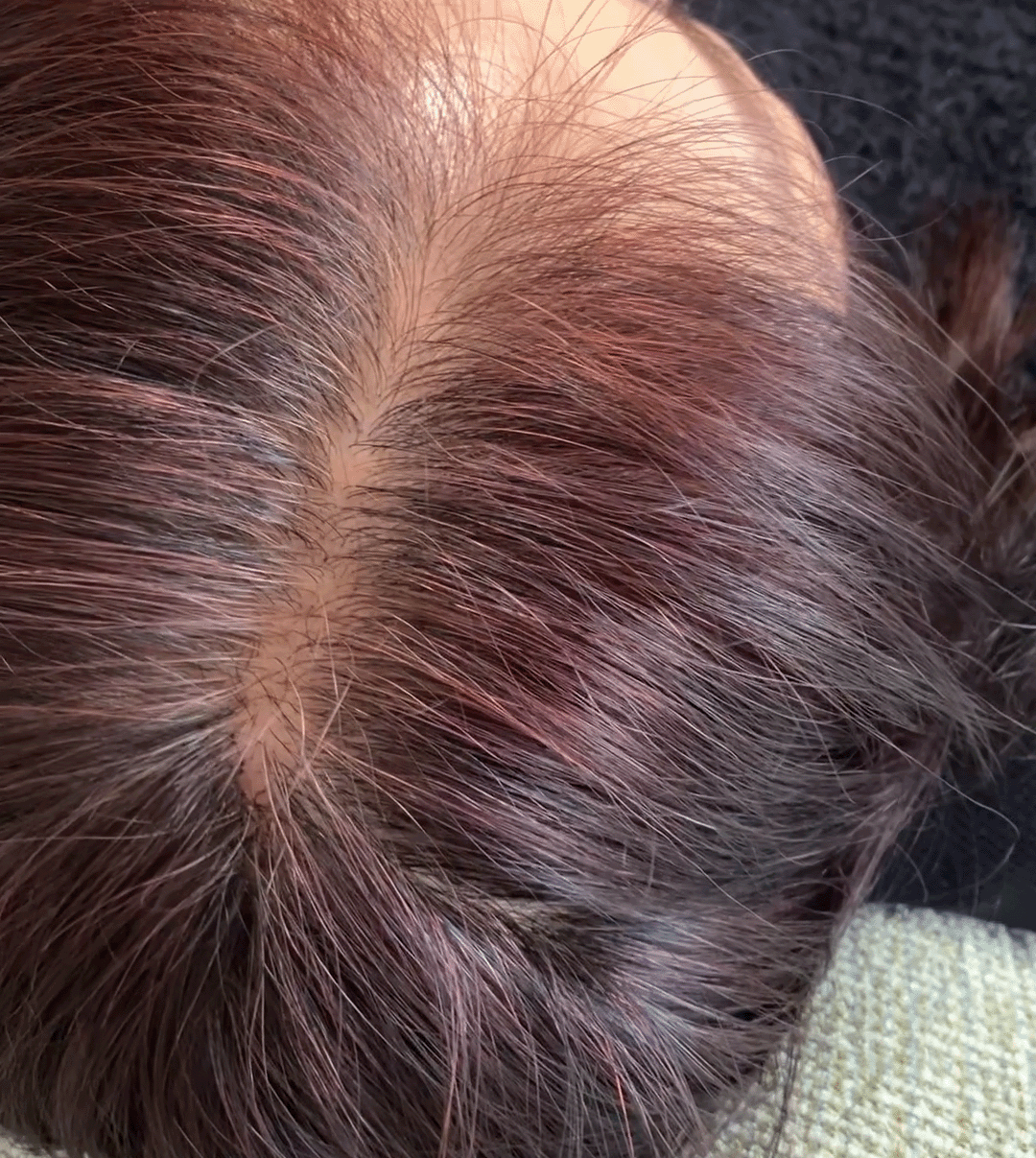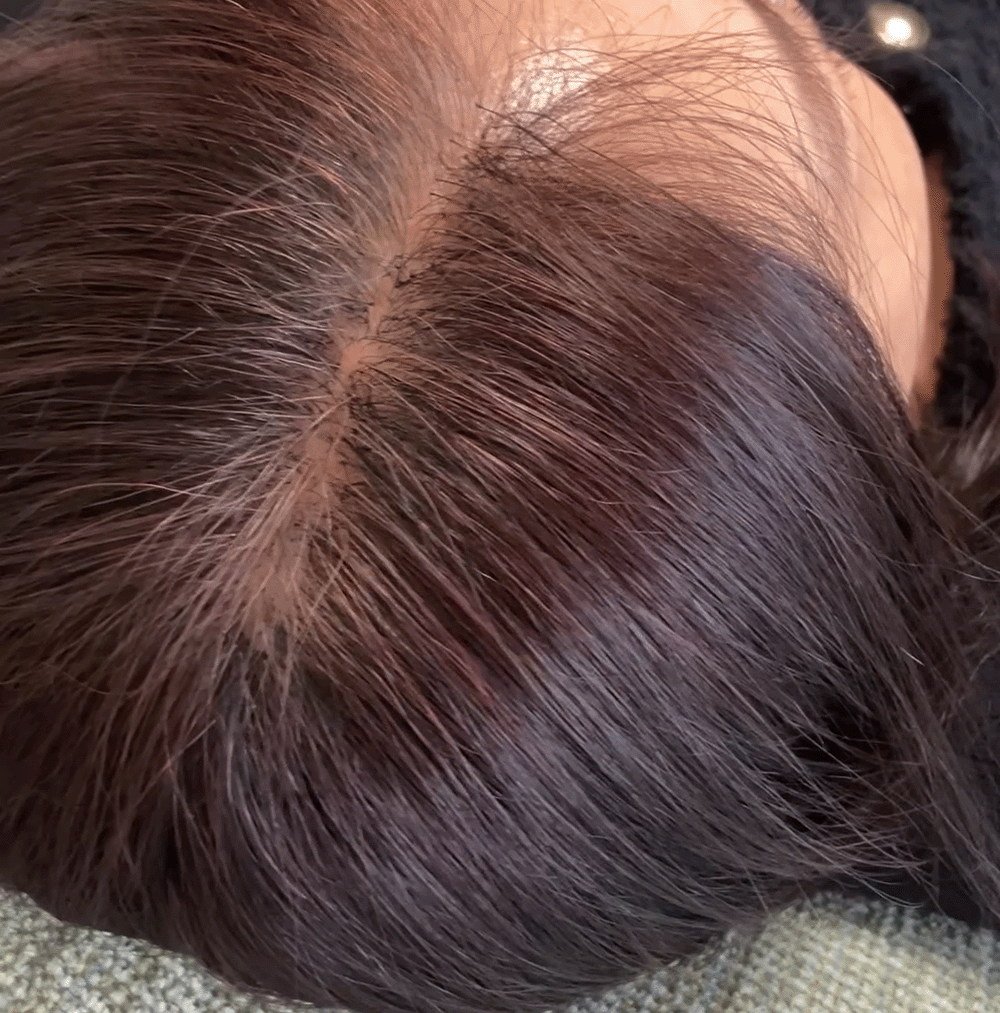 分け目からの透け感とボリュームにお悩みでしたので、分け目から自然にカバーしボリュームアップをさせていただきました。