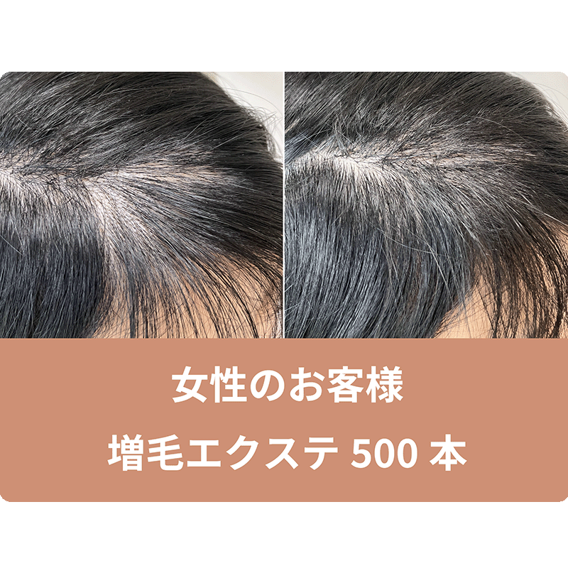 前髪の部分に増毛エクステ500本を結び、透け感を自然にカバーし、ボリュームアップしたお写真を掲載した記事です。
