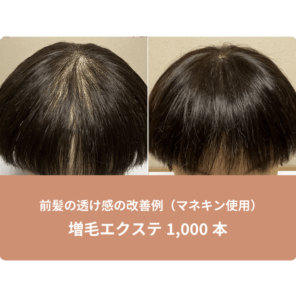 分け目の透け感にお悩みでしたので、分け目に沿って増毛エクステ1000本を結び、透け感を自然にカバーし、ボリュームアップしたお写真を掲載した記事です。